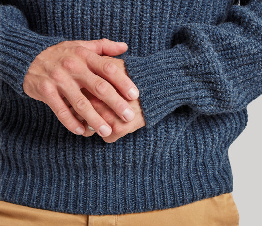 Chunky Wool Fisherman Crew Neck Jumper in Admirmal Blue