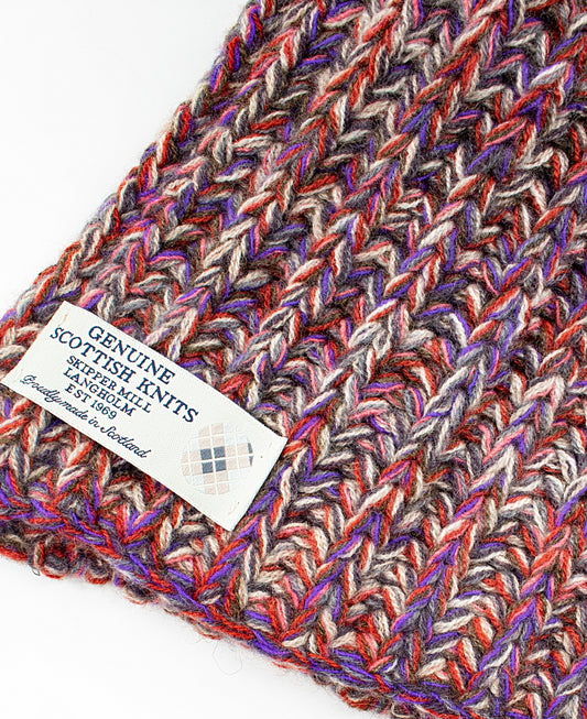 Chunky Knit Ribbed Cashmere Scarf in Purple Mix