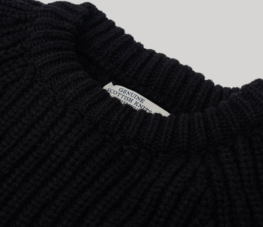 Chunky Wool Fisherman Crew Neck Jumper in Black