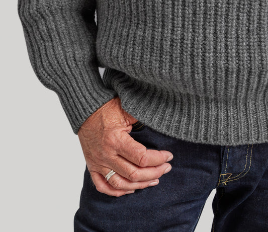 Chunky Wool Fisherman Crew Neck Jumper in Derby Grey