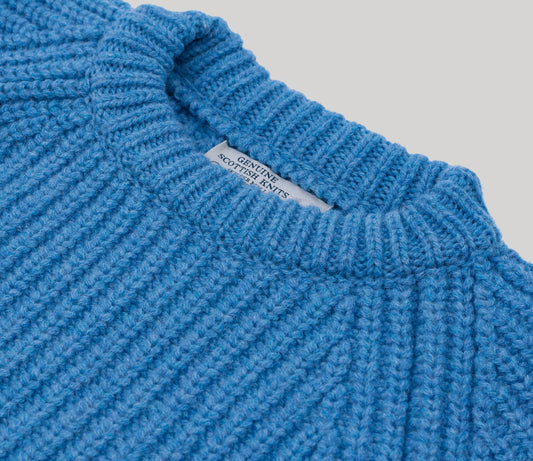 Chunky Wool Fisherman Crew Neck Jumper in Cornflower