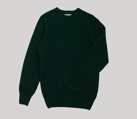 Classic Shetland Crew Neck Jumper in Bottle Green