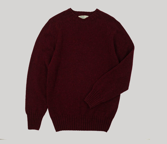 Classic Shetland Crew Neck Jumper in Dark Burgundy