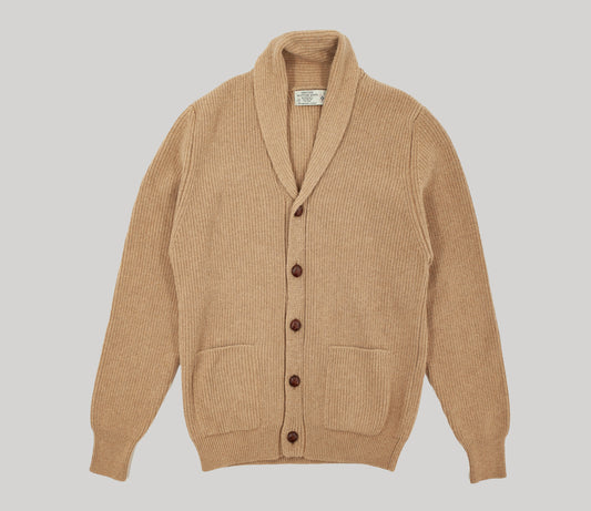 Classic Shawl Neck Cardigan in Camel