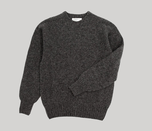 Classic Shetland Crew Neck Jumper in Charcoal