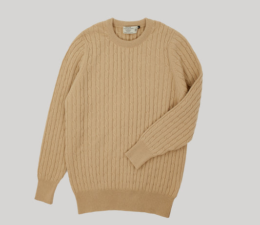 Geelong Lambswool Cable Crew Neck Jumper in CamelRegular price £39.00Regular priceUnit price / per