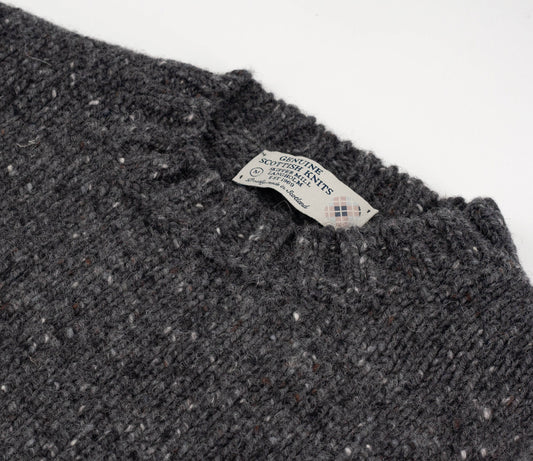 Chunky Donegal Wool Crew Neck Jumper in Derby Grey Tweed