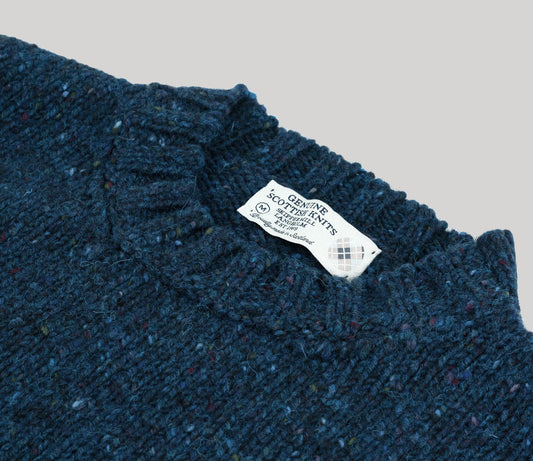 Chunky Donegal Wool Crew Neck Jumper in Navy Tweed