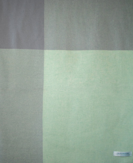 Geelong Cashmere Mix Block Check Throw in Soft Green & Cream
