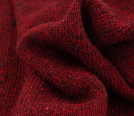 Merino Wool Donegal Crew Neck Jumper in Burgundy Tweed
