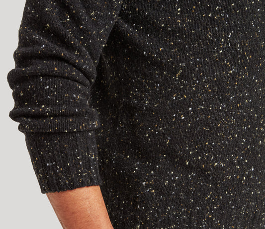 Merino Wool Donegal Crew Neck Jumper in Black Tweed