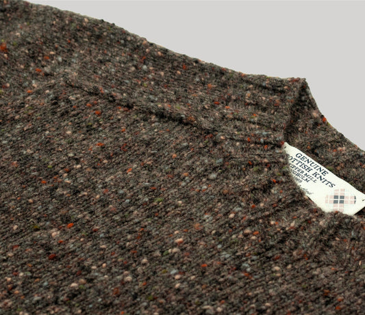Merino Wool Donegal Crew Neck Jumper in Dark Natural Tweed