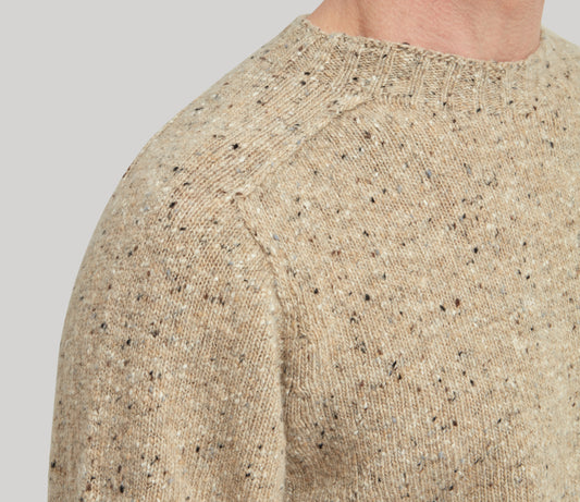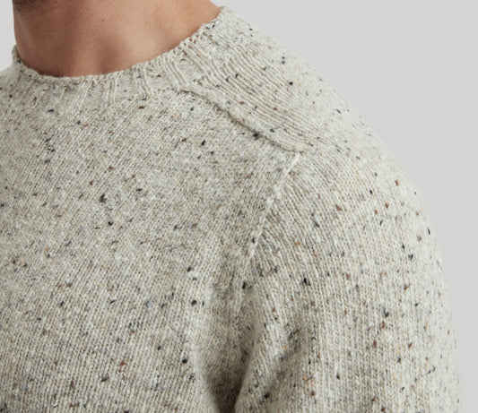 Merino Wool Donegal Crew Neck Jumper in Natural Tweed
