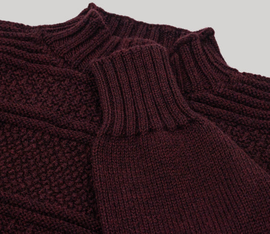 Merino Wool Fife Gansey Jumper in Dark Burgundy