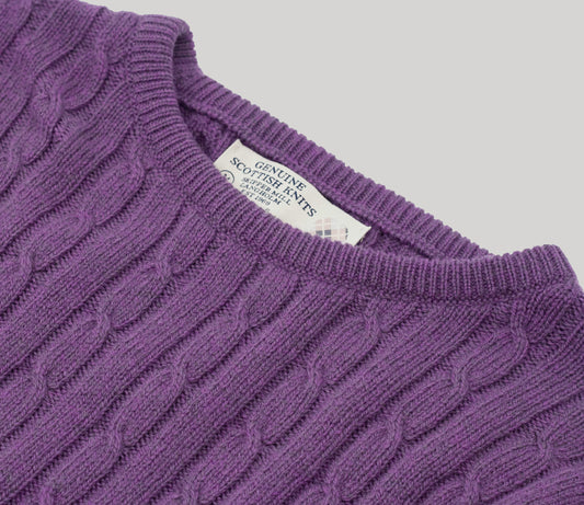 Geelong Lambswool Cable Crew Neck Jumper in Aubergine