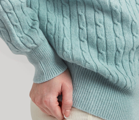 Geelong Lambswool Cable Crew Neck Jumper in Duck Egg
