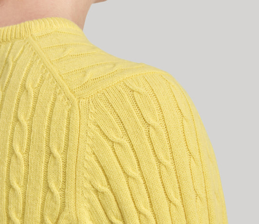 Geelong Lambswool Cable Crew Neck Jumper in Lemon