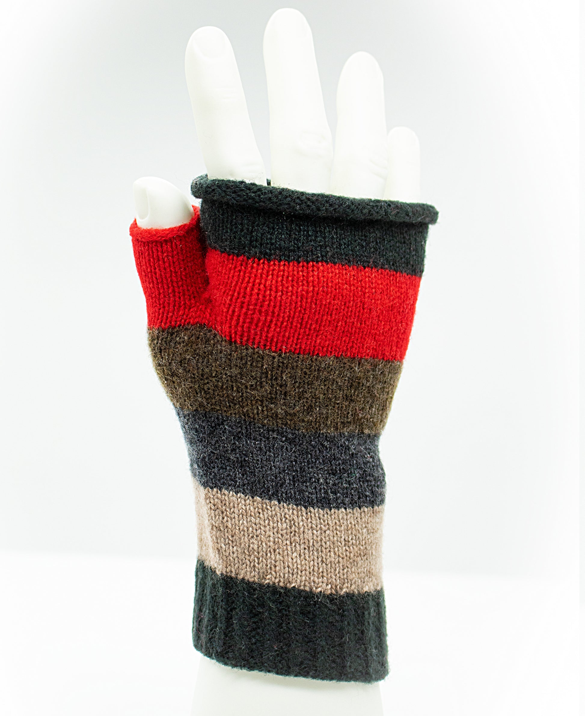 Cashmere Fingerless Stripe Gloves in Moss