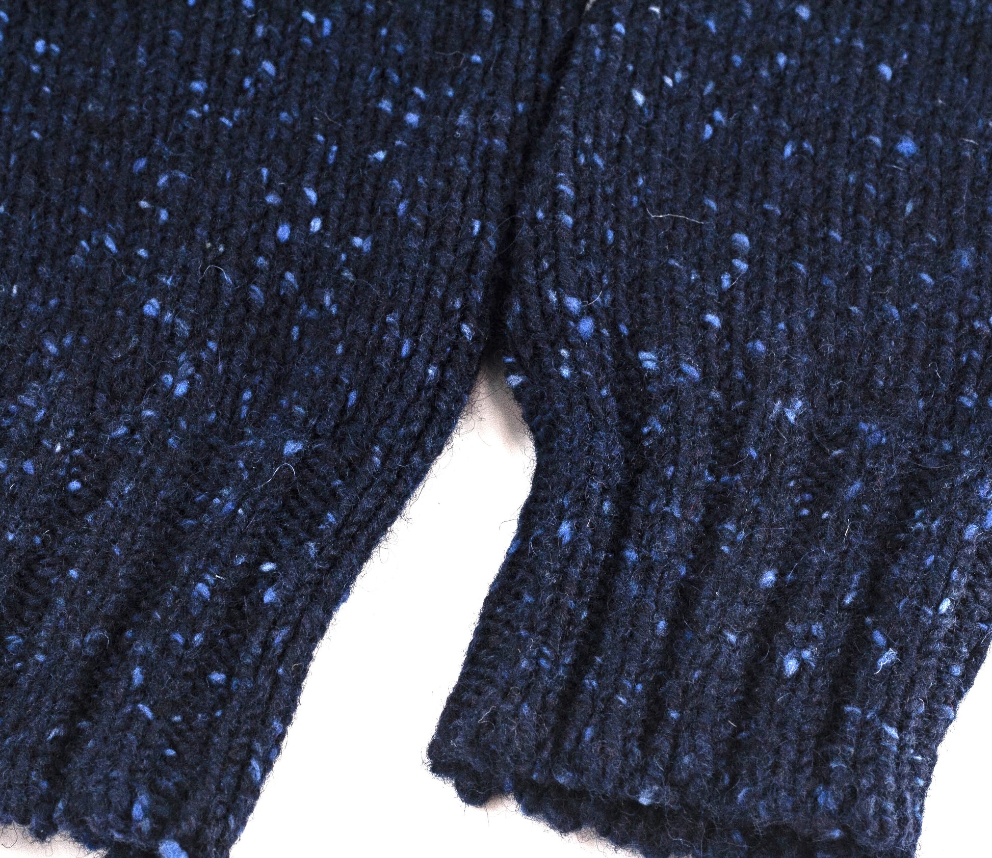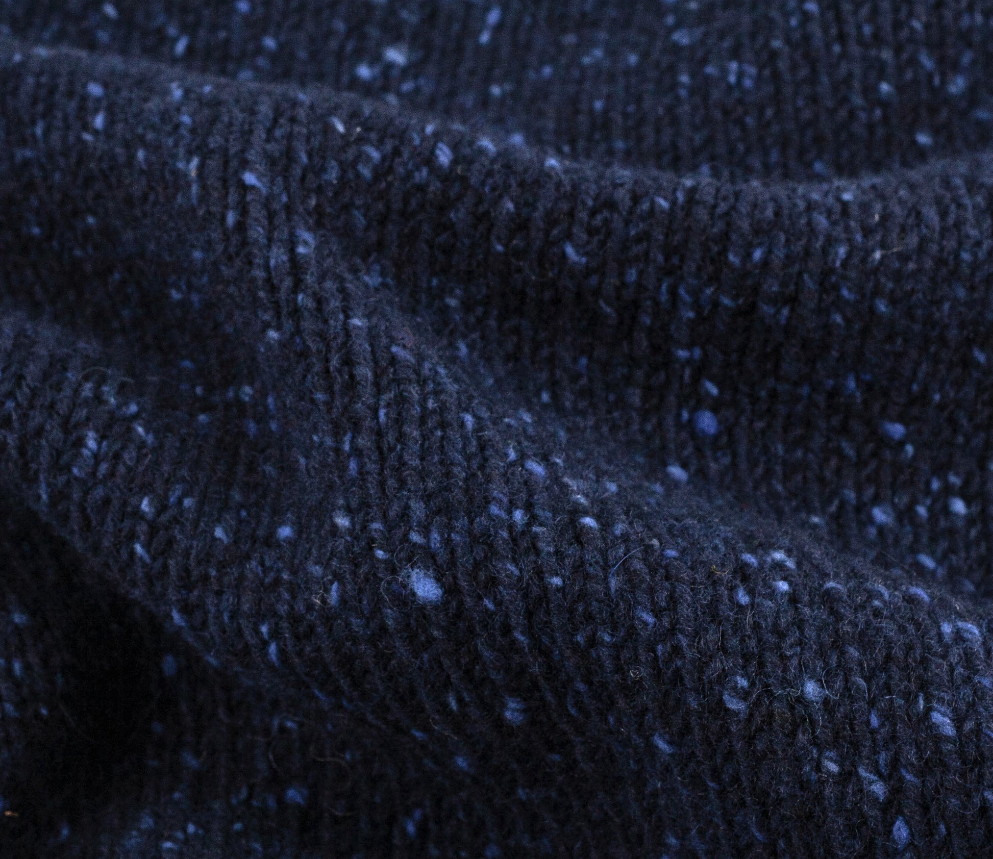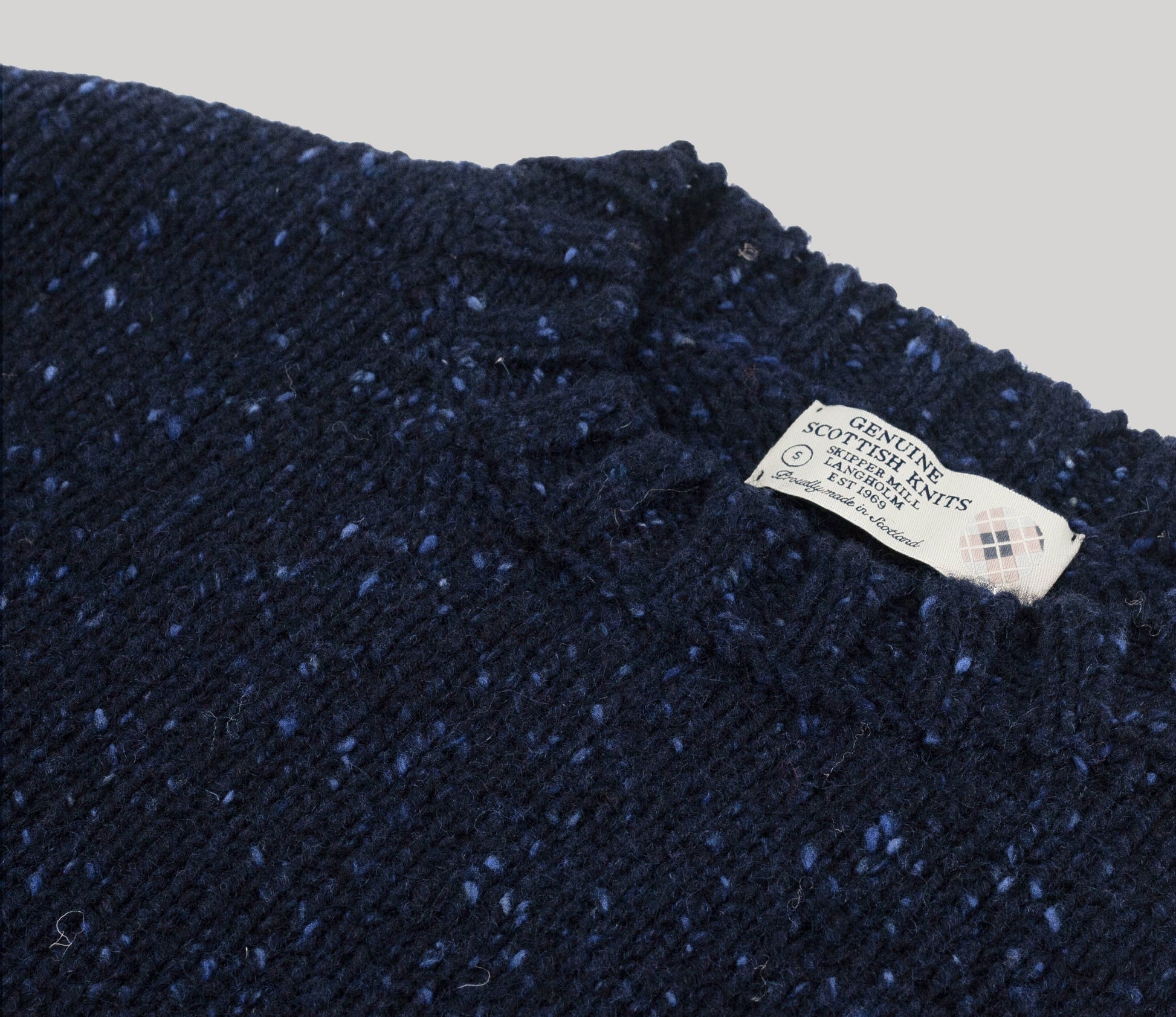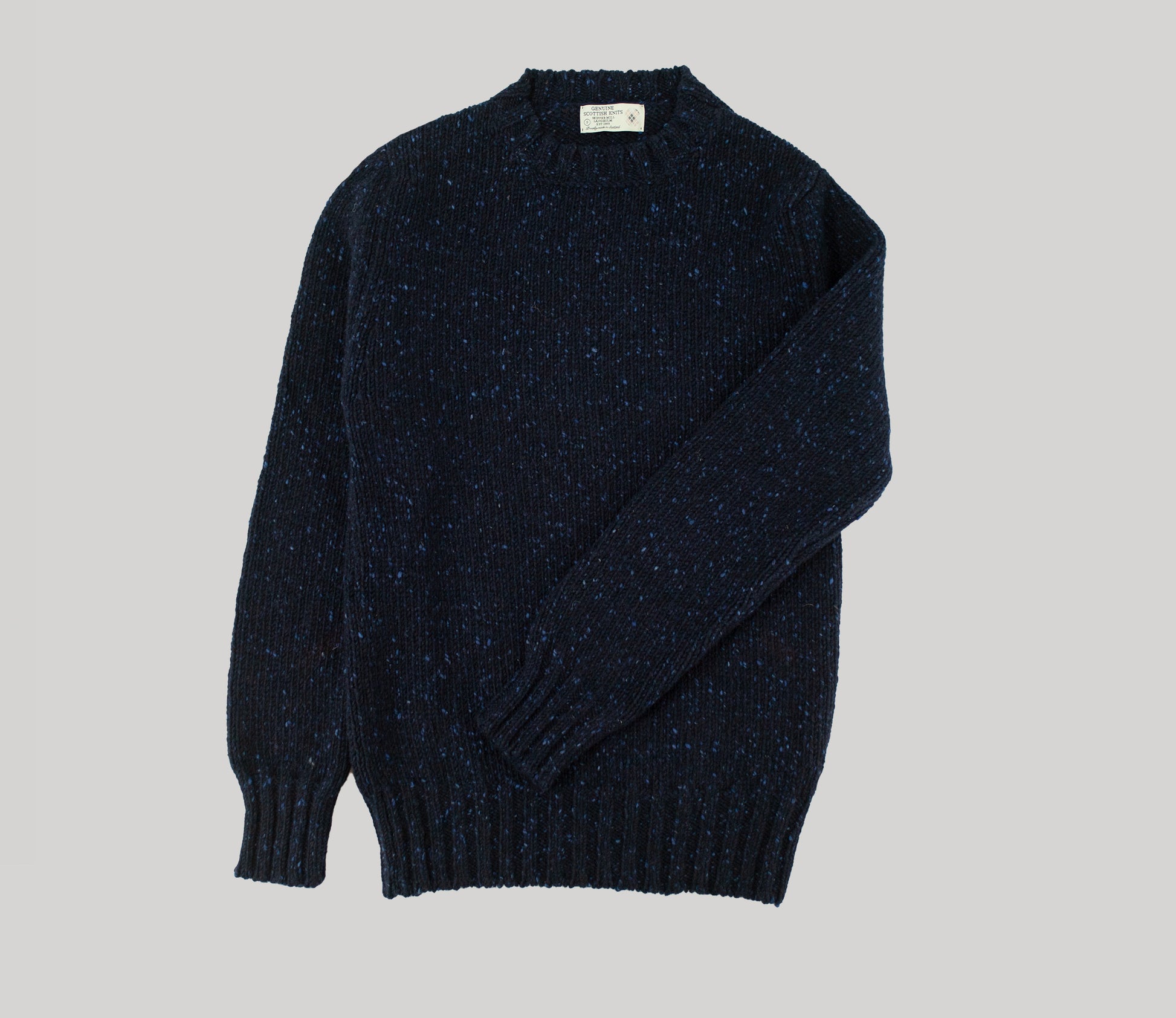Chunky Donegal Wool Crew Neck Jumper in Navy Tweed