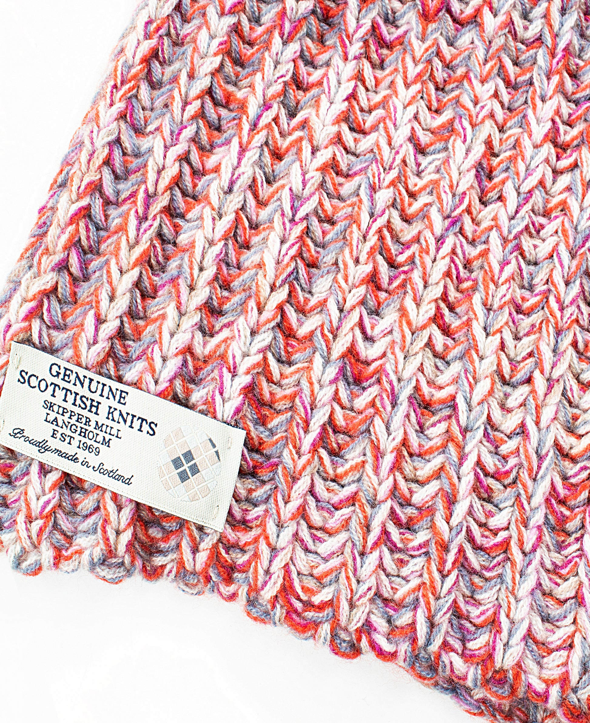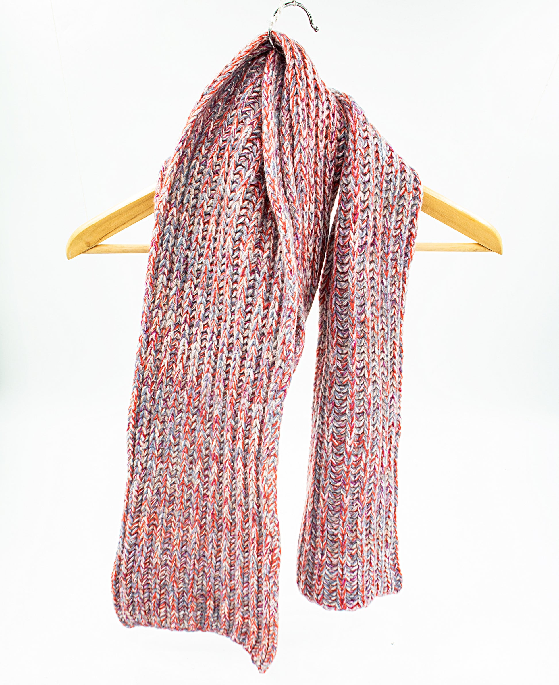 Chunky Knit Ribbed Cashmere Scarf in Pink Mix