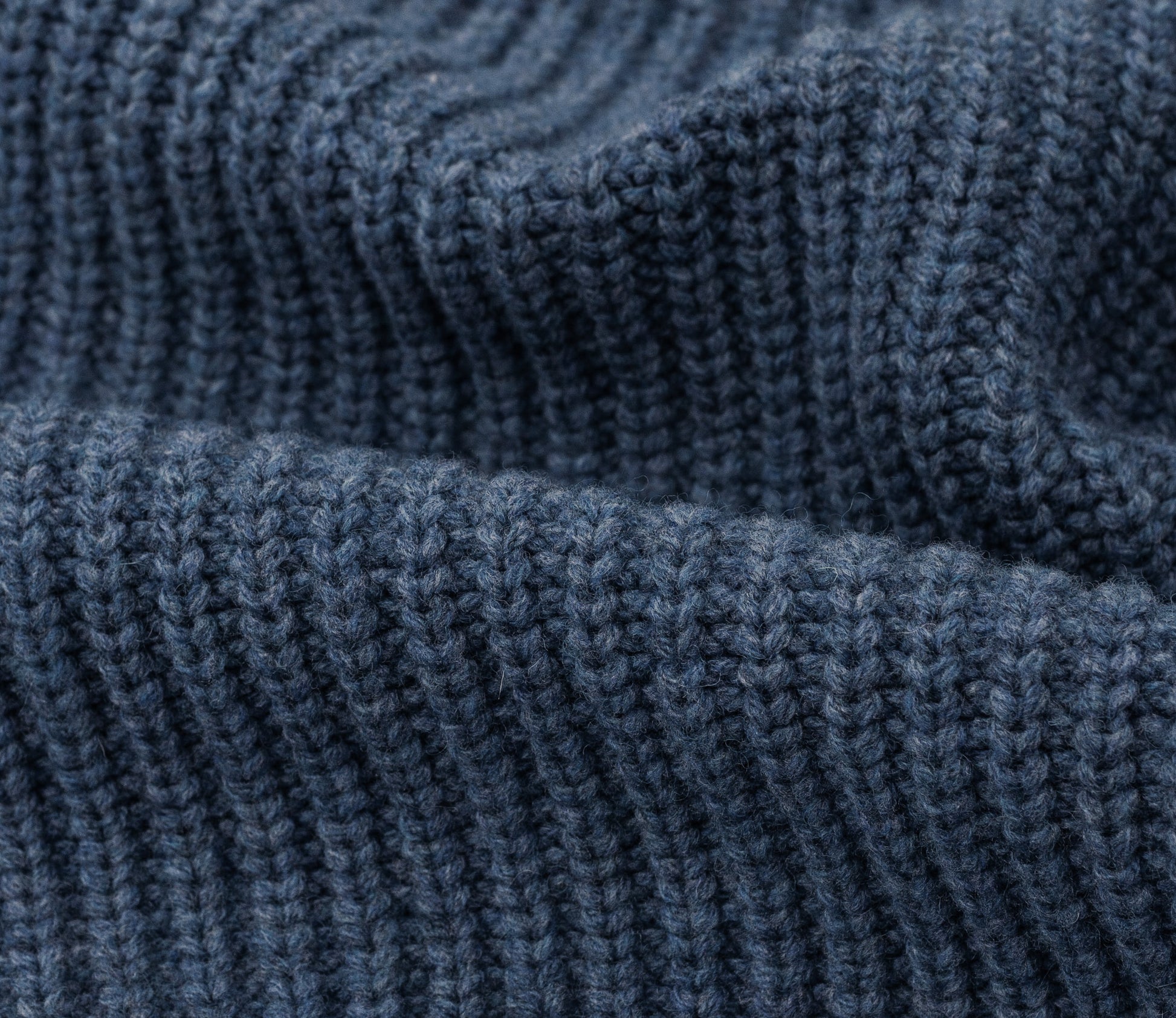 A traditional fully fashioned chunky ribbed crew neck knitted on our chunkiest 3-gauge machines in a Shetland style pure wool. We use a Shetland type yarn which is a mixture of Lambswool and a thicker micron pure wool which gives the jumper its rugged character but is still soft to touch and will keep the wearer very warm during the cooler months. We knit and shape each panel separately beforehand linking and finishing in our soft Scottish water. The ribbed neck is double thickness which suits the traditions of this type of jumper. Made in Fisherman rib stitch or English rib as it is sometimes called, this allows movement and stretch when doing activities. Ribbed hems, neck and cuffs. Made in 100% wool and knitted on machines powered by renewable electricity. Please note the jumper is hand wash or dry clean only. The fit is classic - please do read our size guide.