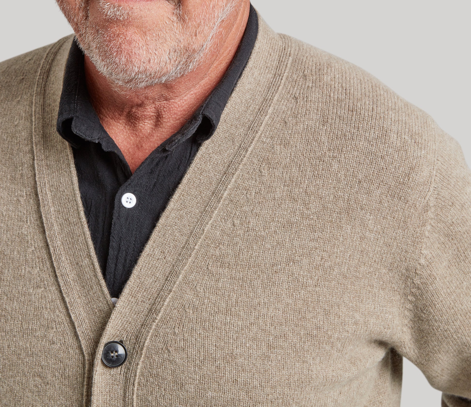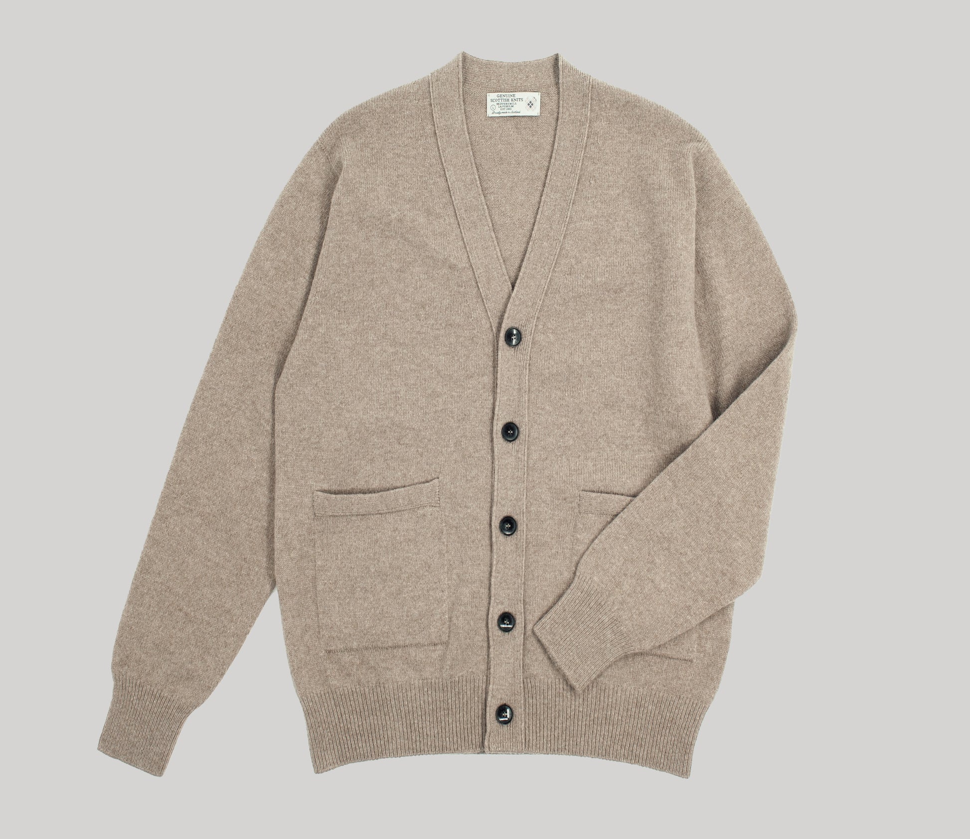 These are our excellent quality Geelong Lambswool cardigans. Geelong is an area of Australia where the best quality Merino sheep are farmed for their superior fleeces. The yarn is spun by Todd and Duncan by Loch Leven then knitted by us in our own factory in Dumfries and Galloway. The cardigan has 1x1 ribbed hem and cuffs with a knitted placket – we use recycled horn buttons and there are 2 knitted in pockets to the front. The fit is classic – please check our size chart for information.