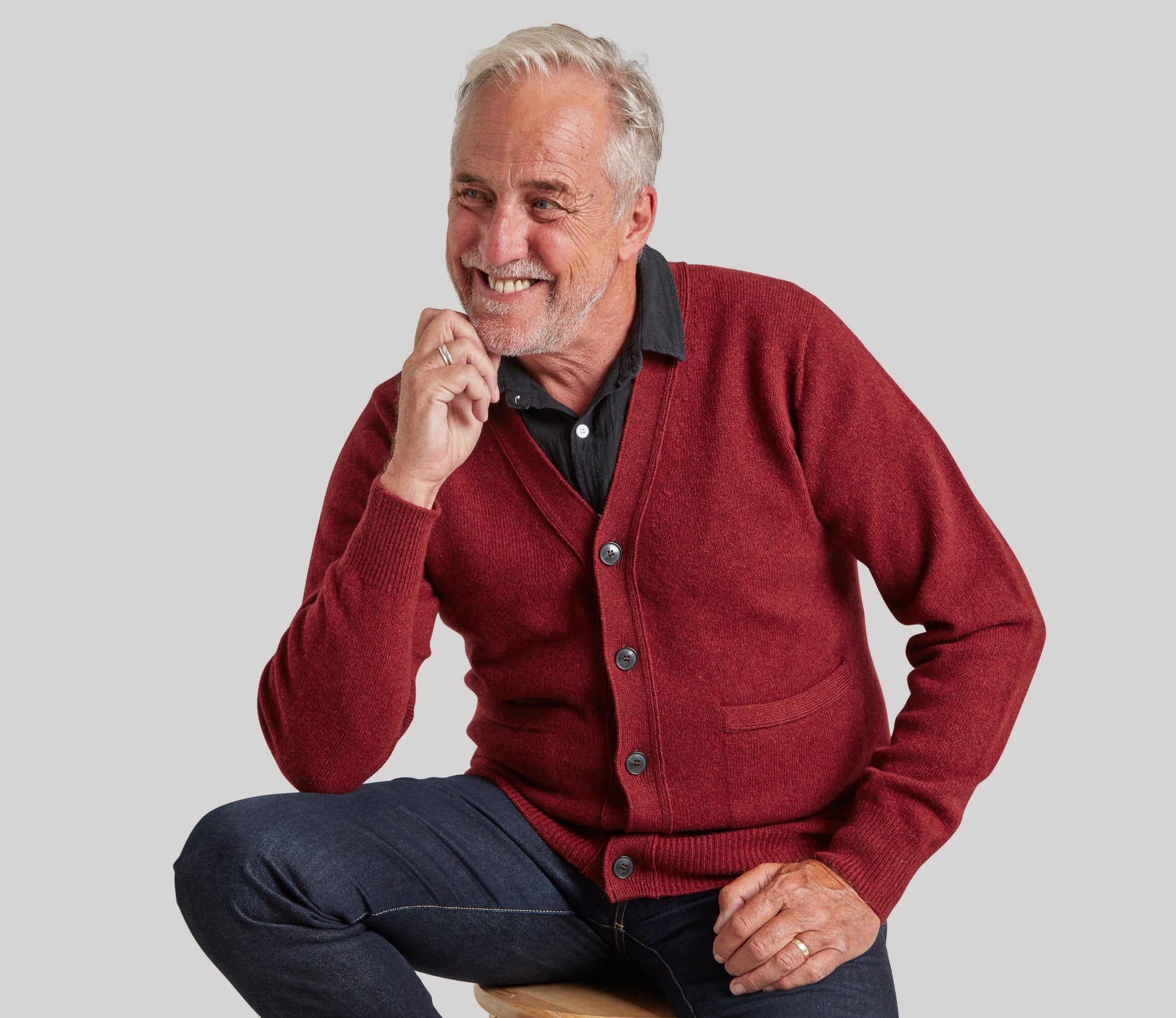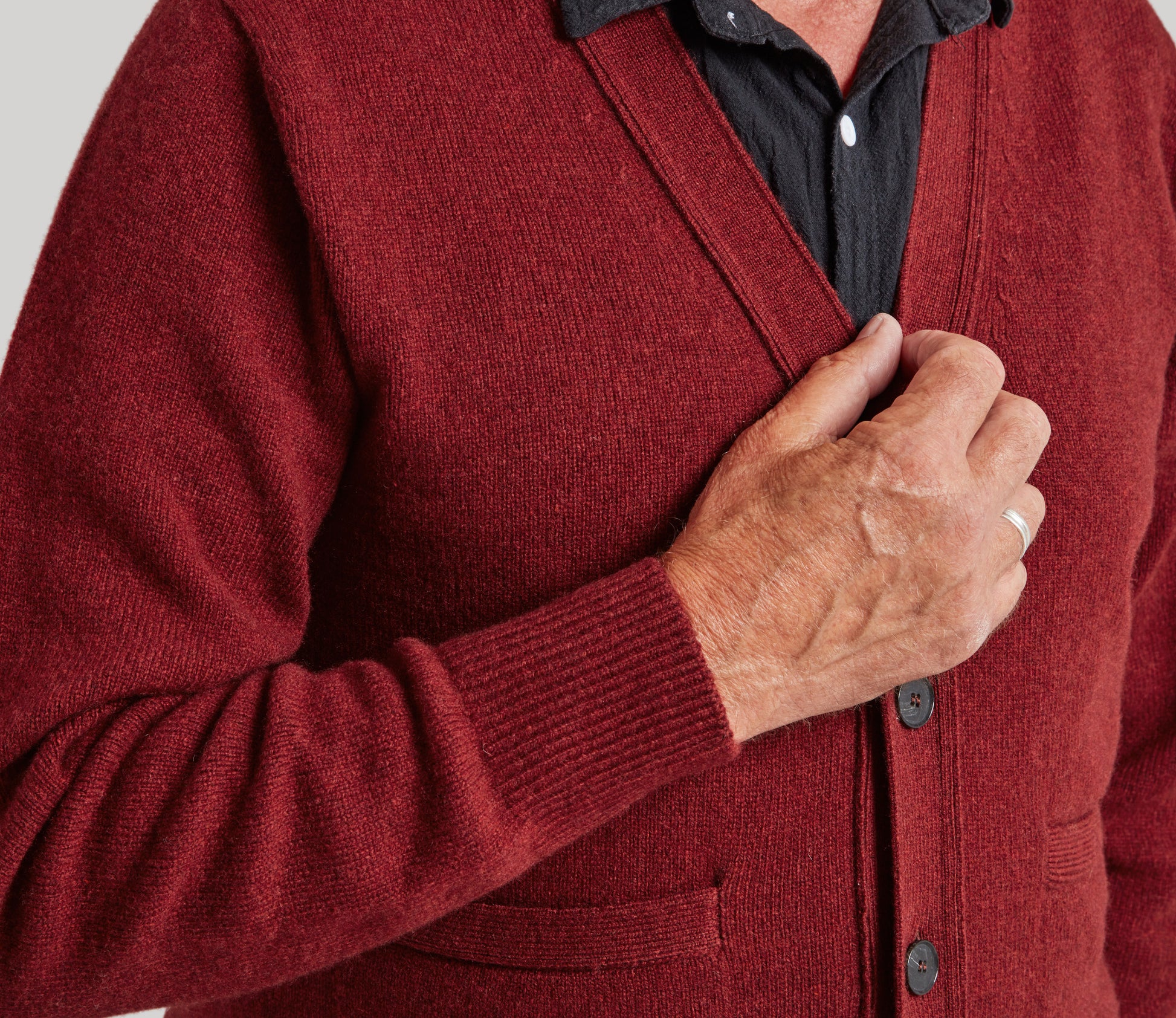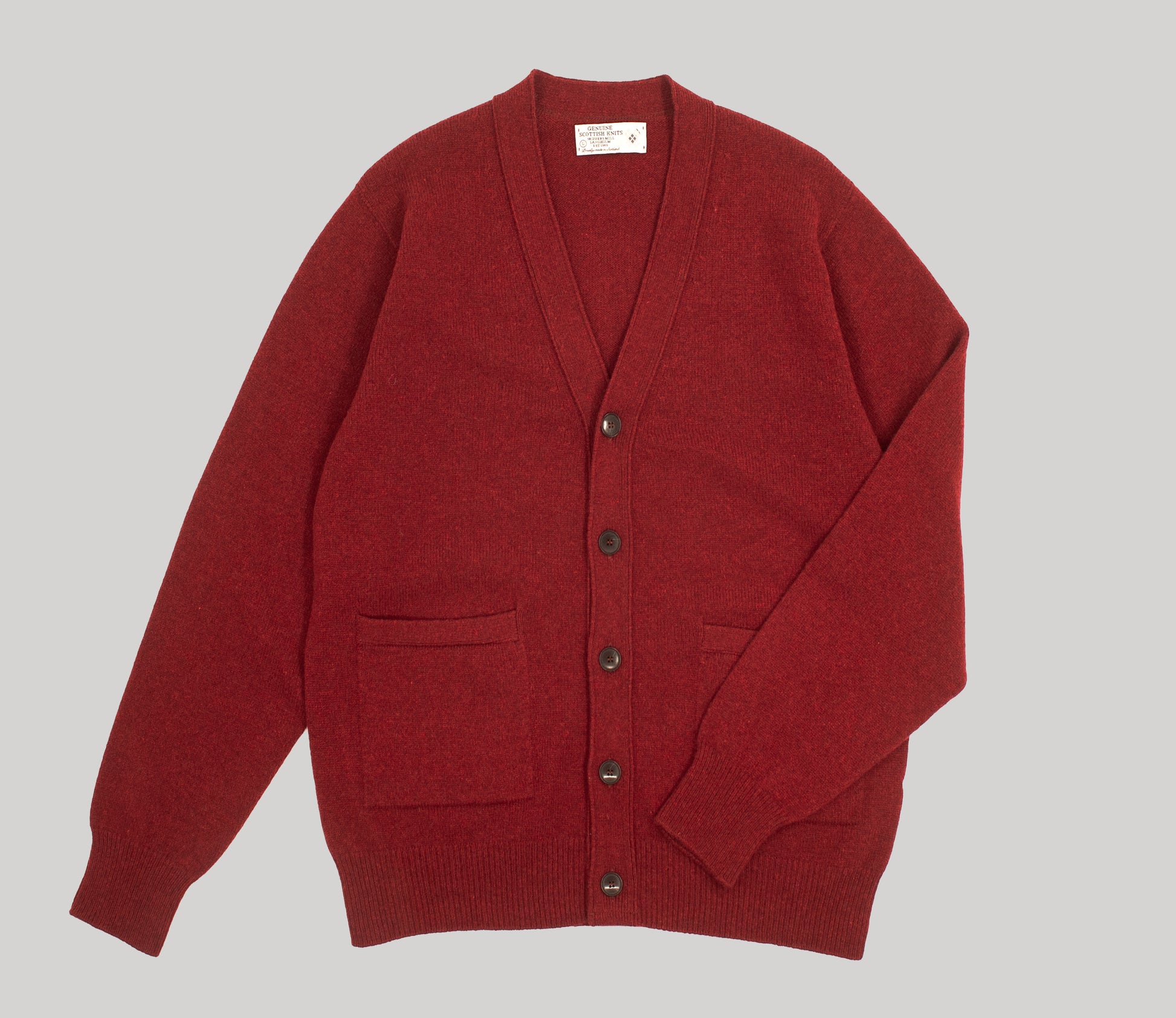 These are our excellent quality Geelong Lambswool cardigans. Geelong is an area of Australia where the best quality Merino sheep are farmed for their superior fleeces. The yarn is spun by Todd and Duncan by Loch Leven then knitted by us in our own factory in Dumfries and Galloway. The cardigan has 1x1 ribbed hem and cuffs with a knitted placket – we use recycled horn buttons and there are 2 knitted in pockets to the front. The fit is classic – please check our size chart for information.