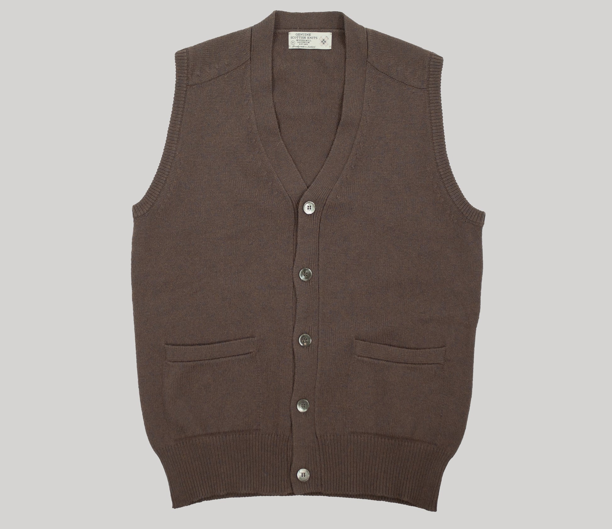 Pure lambswool waistcoat with 2 pockets, hand linked stolling and real horn buttons. A real classic and smart for every occasion. 2 ply Lambswool spun and knitted in Scotland. Was there ever a more usable piece of knitwear?