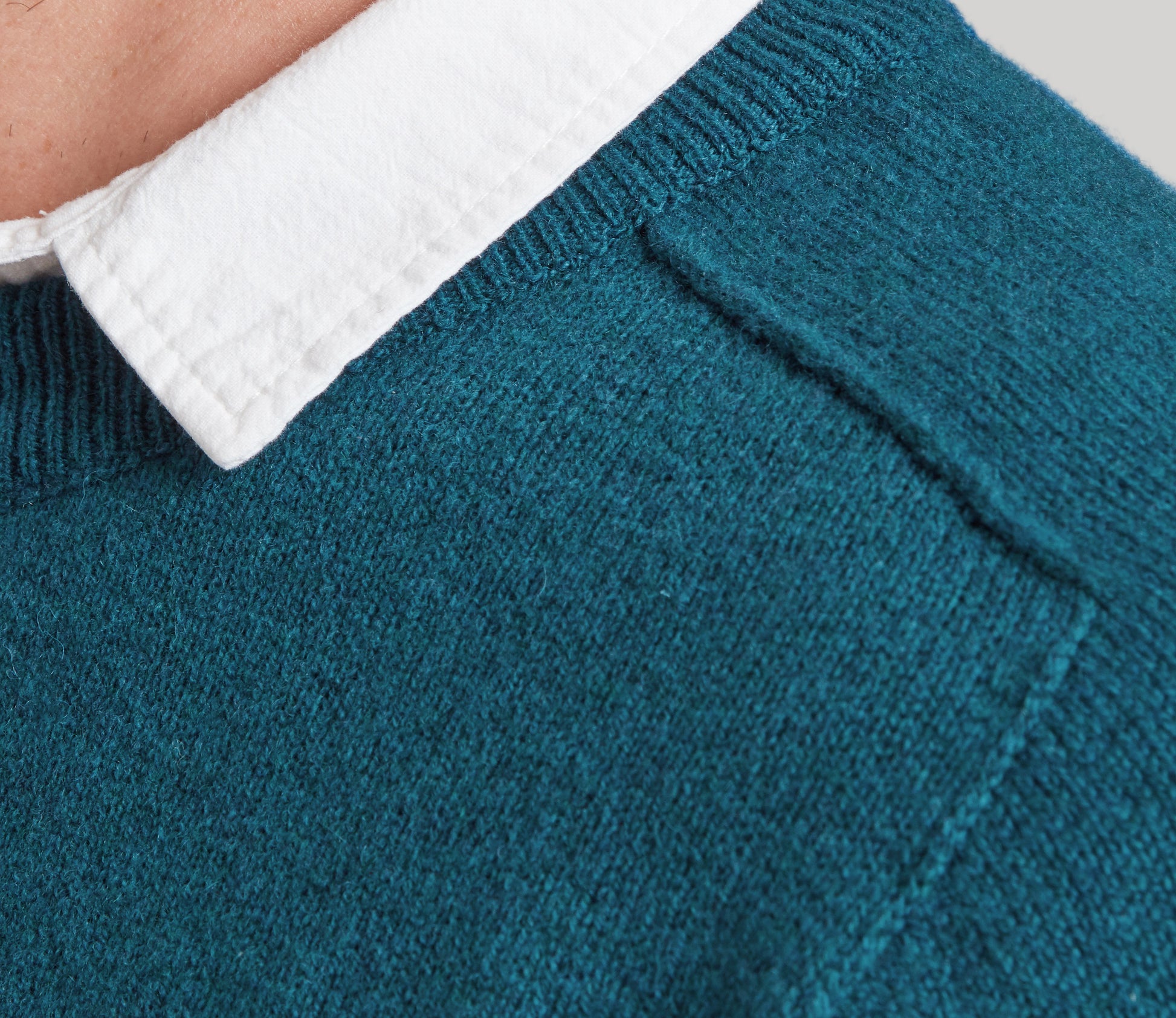 From our seamless knitting machines we have knitted a classic saddle shoulder jumper in luxury British spun Lambswool, the handfeel is very soft after washing in our lovely Scottish water. The detailing includes 1 by 1 ribbed neck, hem and cuff. The neck trim is hand linked and then sewn again by hand. The fit is classic - your normal size should be fine but please do check our size chart and if you do have any questions email us.