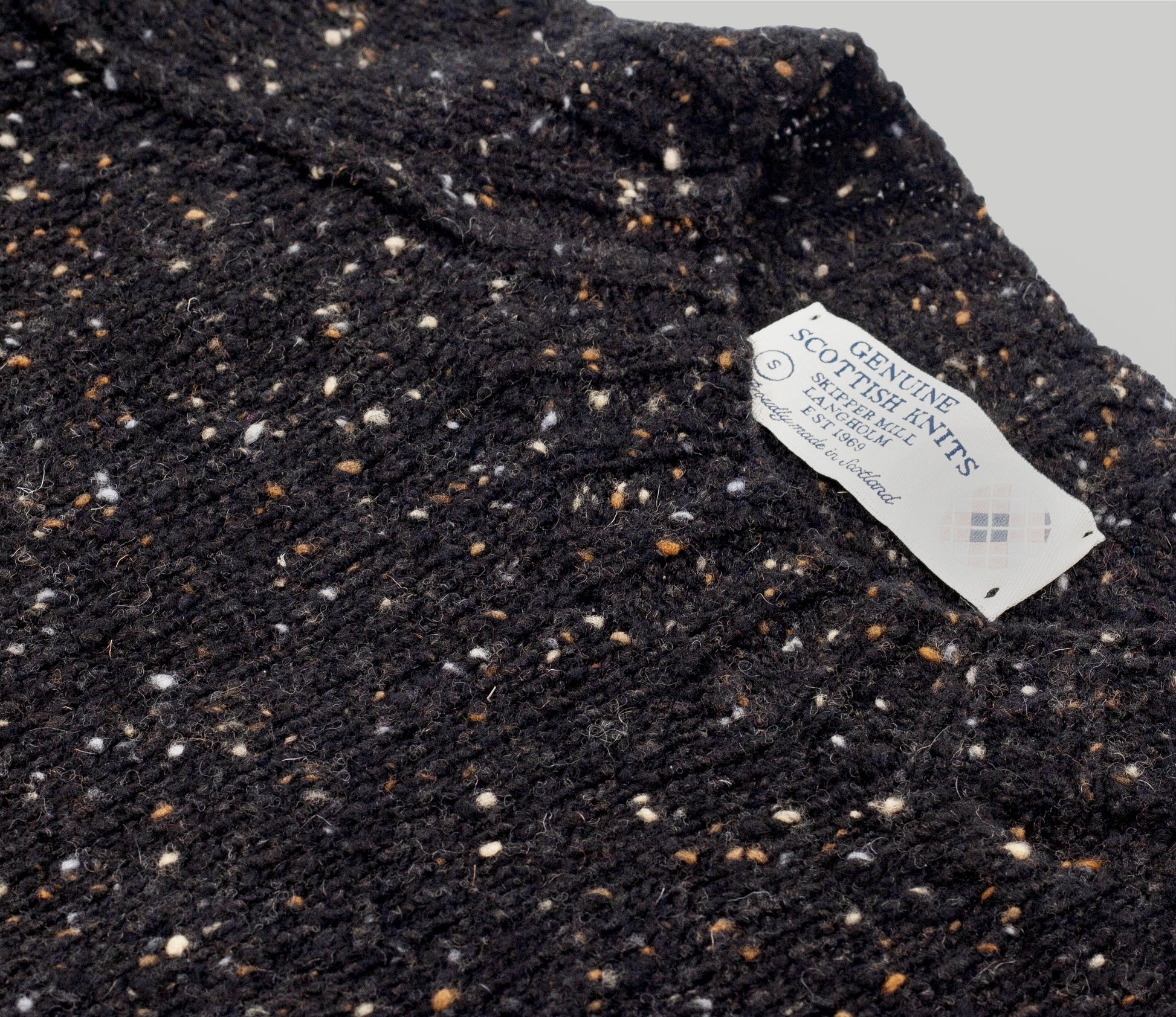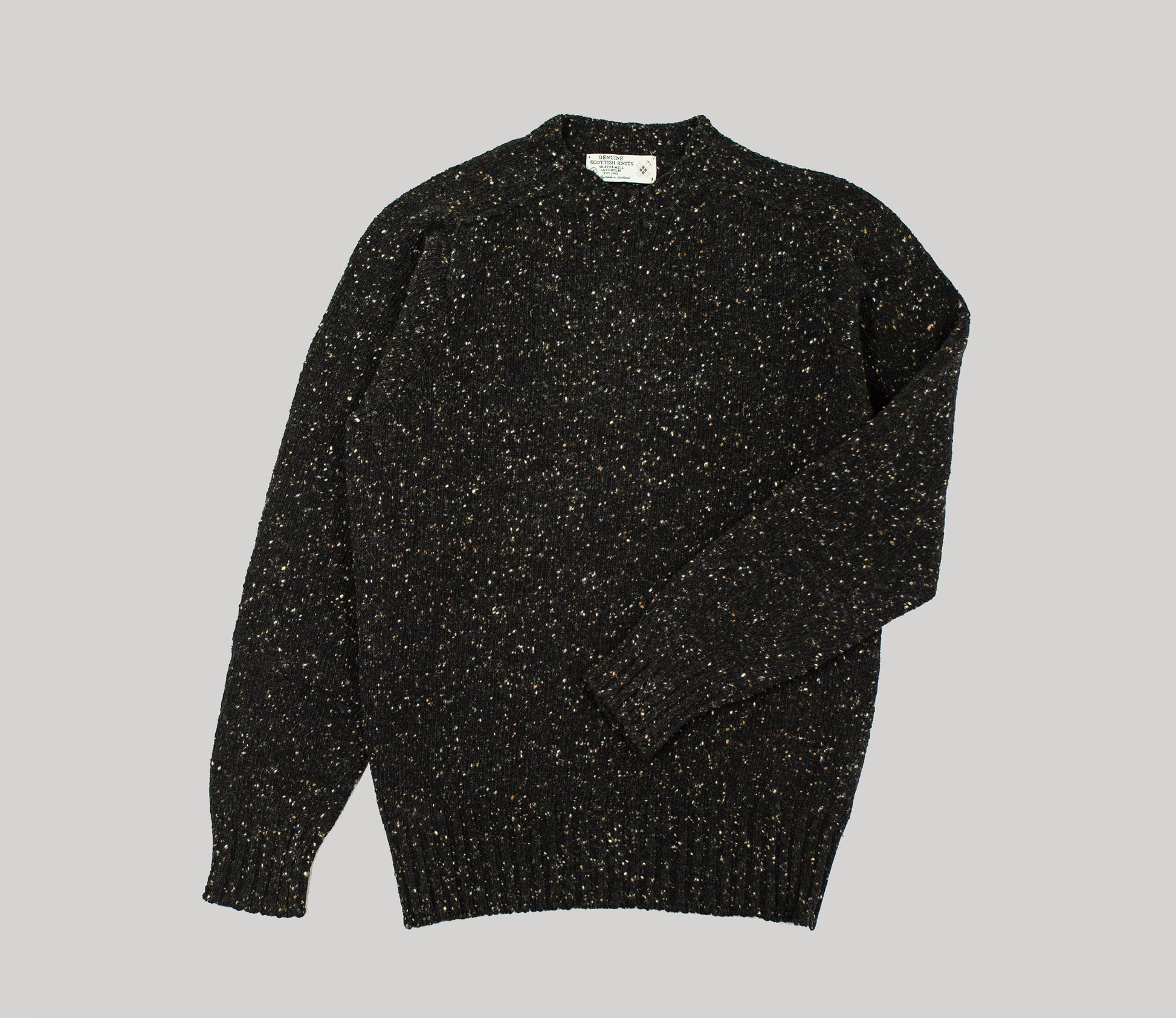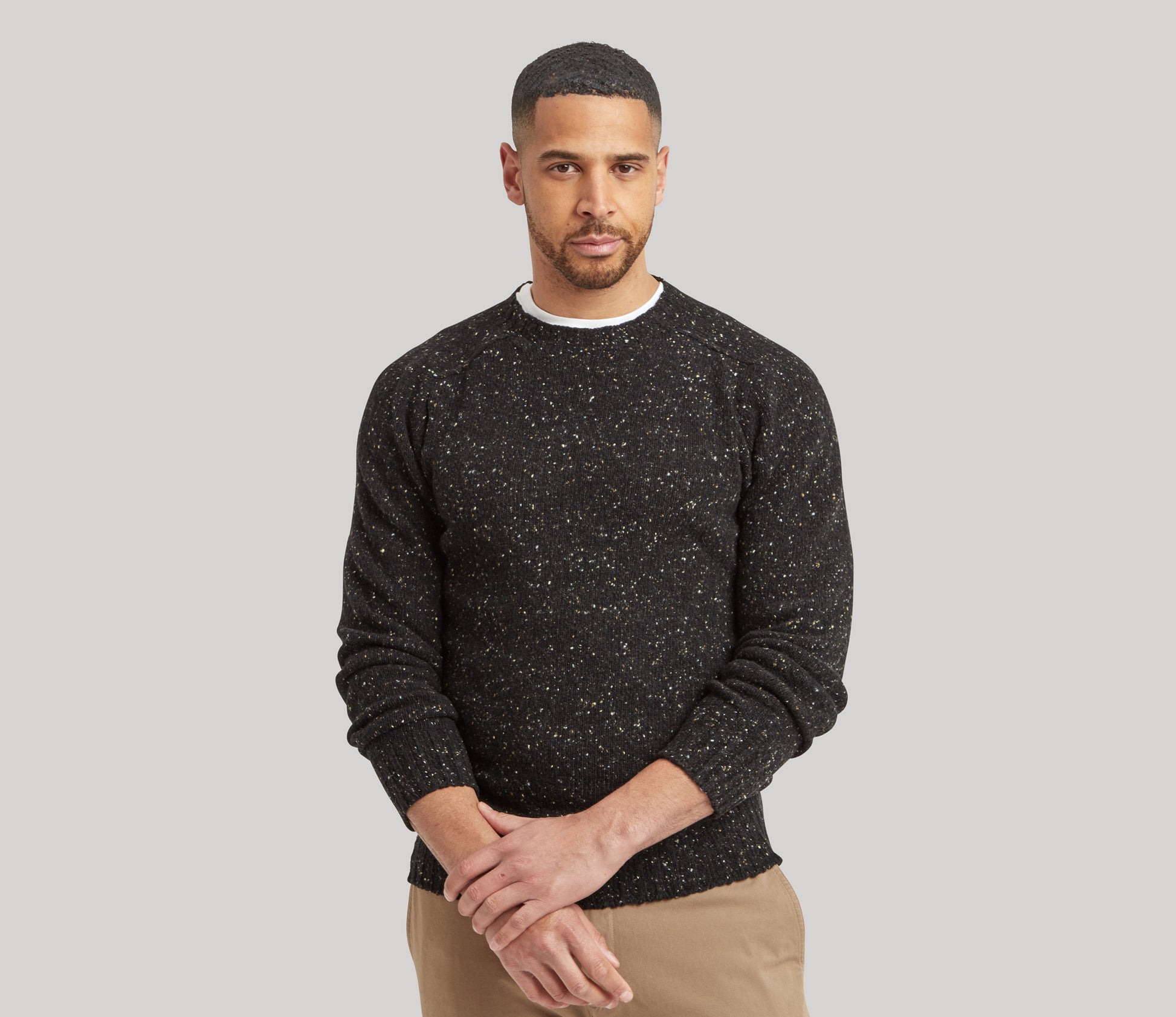 Merino Wool Donegal Crew Neck Jumper in Black Tweed